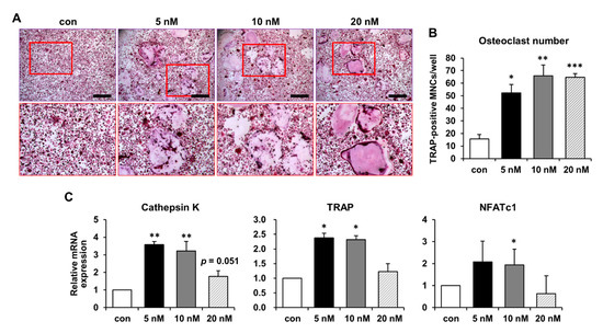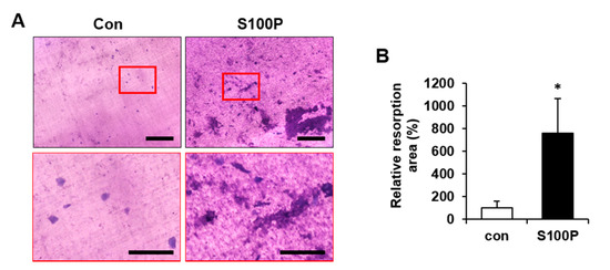 2.3. Increased Osteoclast Differentiation and Bone-Resorbing Activity following S100P Treatment