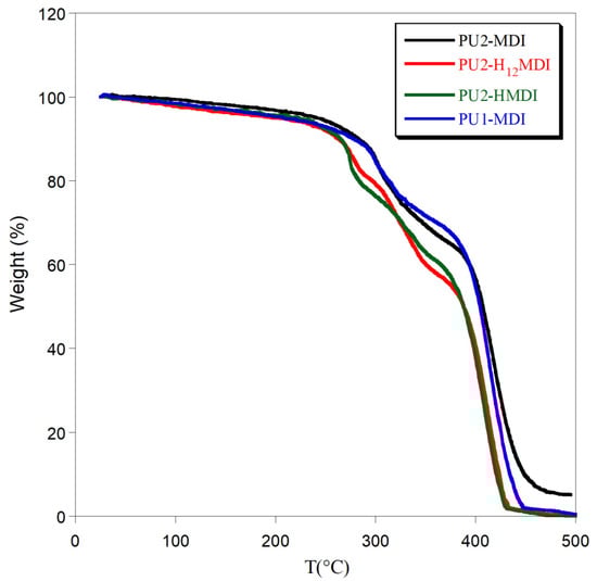 - Wang, T.-L.; Hsieh, T.-H. Effect of polyol structure and molecular weight on the thermal stability of segmented poly(urethaneureas). Polym. Degrad. Stab. 1997, 55, 95–102. [Google Scholar]