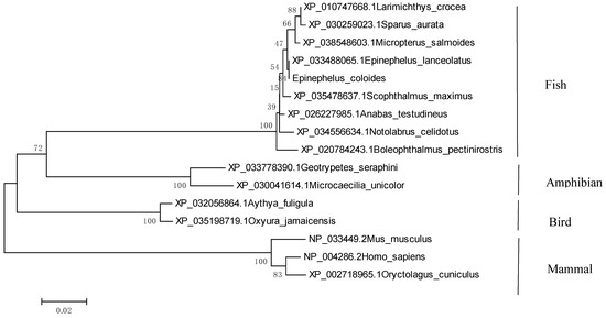 - Wei, J.; Guo, M.; Gao, P.; Ji, H.; Li, P.; Yan, Y.; Qin, Q. Isolation and characterization of tumor necrosis factor receptor-associated factor 6 (TRAF6) from grouper, Epinephelus tauvina. Fish Shellfish Immunol. 2014, 39, 61–68. [Google Scholar] [CrossRef]