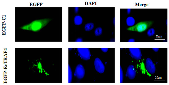 | C1-EcTRAF4-F C1-EcTRAF4-R | GCCTCGAGCTATGCCCGGGTTTGATTAC GCGGATCCTTAAGCCATGATCTTCTGG | pEGFP-C1 cloning |