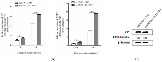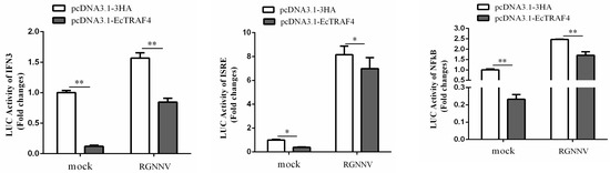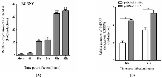 2.7. RGNNV or CP Promotes EcTRAF4 Expression