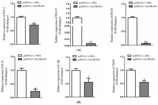 2.8. EcTRAF4 Is a Negative Regulator of Virus-Induced IFN Signaling