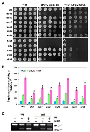 2.3. The MAPK Slt2 Is Required for Both Cadmium- and Tm-Induced UPR Pathways