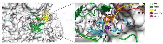 - Verma, R.; Aravind, L.; Oania, R.; McDonald, W.H.; Yates, J.R., III; Koonin, E.V.; Deshaies, R.J. Role of Rpn11 metalloprotease in deubiquitination and degradation by the 26S proteasome. Science 2002, 298, 611–615. [Google Scholar] [CrossRef] [PubMed]