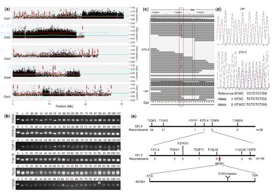 Arabidopsis thaliana ecotype Columbia (Col), Landsberg erecta (Ler) and the mutant 275-3 (the background was Col) were grown in the greenhouse of Wuhan University at 22 ± 2 °C under a 16 h light/8 h dark photoperiod. The mutant 275-3 was obtained from the Arabidopsis Biological Resource Center (http://abrc.osu.edu/; accessed on 7 June 2021).