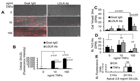 2.7. TNFα-Induced Dil-LDL Accumulation Is Blocked by Specific LDLR Antibody
