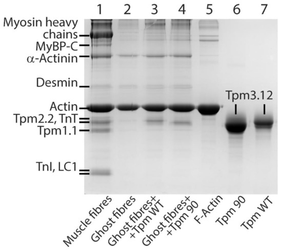 - Perry, S.V. Vertebrate tropomyosin: Distribution, properties and function. J. Muscle Res. Cell Motil. 2001, 22, 5–49. [Google Scholar] [CrossRef]