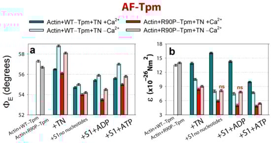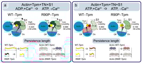 2.2. The R90P Mutation in Tpm3.12 Depresses the Ca2+-Dependent Tpm’s Movement on the Actin Filaments