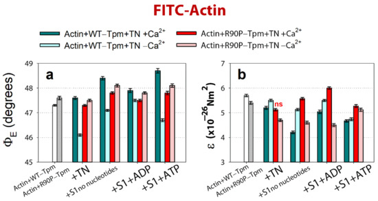 2.4. The R90P Mutation Allows the Strong Binding of the Myosin Heads to F-Actin at a Low Ca2+