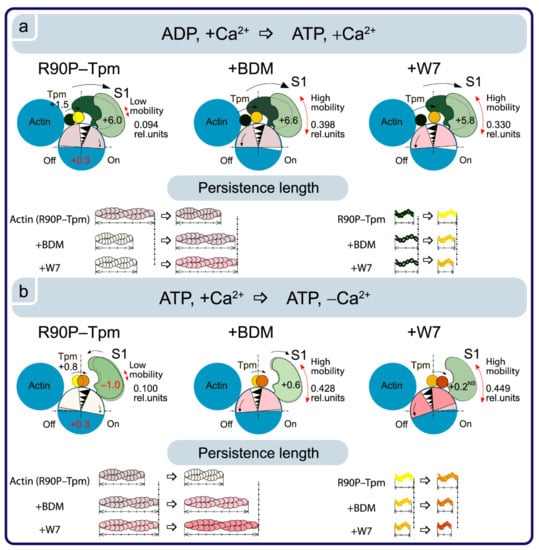 - Kakol, I.; Borovikov, Y.S.; Szczesna, D.; Kirillina, V.P.; Levitsky, D.I. Conformational changes of F-actin in myosin-free ghost single fiber induced by either phosphorylated or dephosphorylated heavy meromyosin. Biochim. Biophys. Acta 1987, 913, 1–9. [Google Scholar] [CrossRef]