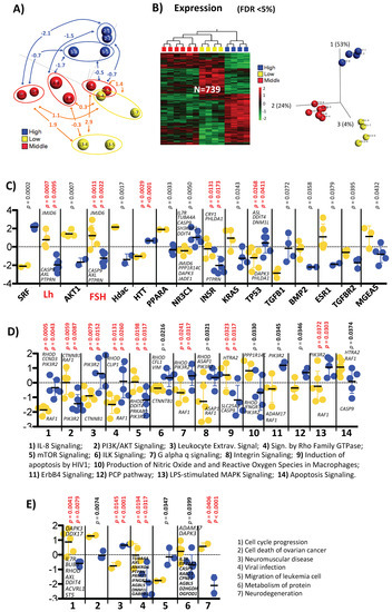 - Koks, S.; Velthut, A.; Sarapik, A.; Altmae, S.; Reinmaa, E.; Schalkwyk, L.C.; Fernandes, C.; Lad, H.V.; Soomets, U.; Jaakma, U.; et al. The differential transcriptome and ontology profiles of floating and cumulus granulosa cells in stimulated human antral follicles. Mol. Hum. Reprod. 2010, 16, 229–240. [Google Scholar] [CrossRef] [PubMed]