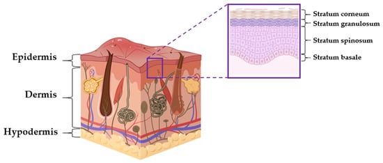 The skin is one of the largest organs in the human body. There are three layers in this tissue which are separated but cooperate to maintain homeostasis: the epidermis, dermis, and hypodermis (Figure 2) [26].