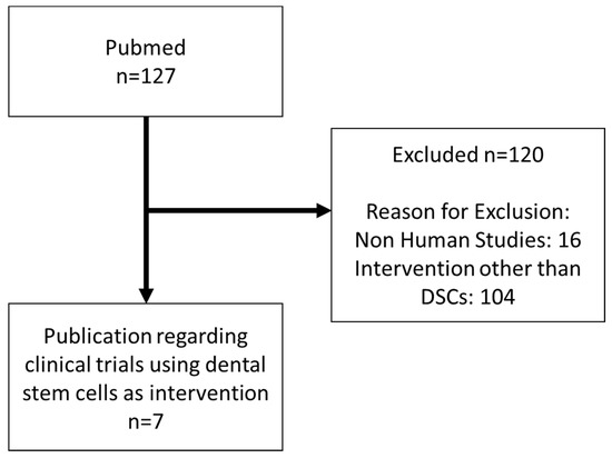 Dental development starts preceding a child’s birth and continues beyond until the permanent teeth replace the primary, deciduous teeth. As a result of that, DSCs can be obtained from immature, developing tissue as well as from mature, developed tissues, whereas for the immature teeth, the dental follicles have a higher stemness and thus a higher potency [19]. Therefore, there is a variety of stem cells isolated from dental tissues, and one feature they share is their extraordinary plasticity and differentiation potential (Figure 1) [20]. These stem cells include the following: