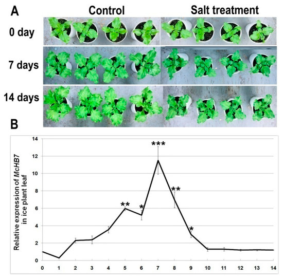 2.3. Relative Expression of McHB7 in Ice Plant Leaves after Salt Stress Treatment