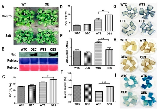 - Cheng, Z.; Zhang, X.; Zhao, K.; Zhou, B.; Jiang, T. Ectopic expression of a poplar gene NAC13 confers enhanced tolerance to salinity stress in transgenic Nicotiana tabacum. J. Plant Res. 2020, 133, 727–737. [Google Scholar] [CrossRef] [PubMed]