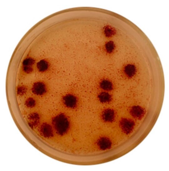 Representatives of the Chromatiaceae family are mesophilic, predominantly motile, rod-shaped or coccoid-shaped bacteria. All representatives have bacteriochlorophyll (BChl) a or b, contain specific carotenoids (e.g., okenone, spiriloxanthine, lycopene). The species show low to no tolerance to O2 and require the presence of light and reduced sulfur compounds in the environment for growth, or other specific conditions where there is high concentration of H2S. The cultivation of the Chromatiaceae family species is difficult and it is complicated to obtain isolated colonies. Some of them appear on agar medium after 2–4 weeks of cultivation. The colonies of purple sulfur bacteria on Van Niel’s agar medium are demonstrated in Figure 1. The bacteria Lamprocystis sp. have been cultivated under anaerobic conditions at light intensity 500–700 lux. The purple sulfur bacteria, especially the species of Lamprocystis genus are interesting to study, because they can form big asymmetric conglomerates in the water environment and hence the reason for presenting the growth of their colonies below.