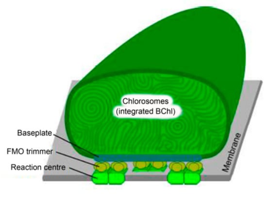 In 2002, in addition to sequencing the 16S rRNA molecule, the gene for the Fenna–Matthews–Olson protein (FMO) was also sequenced. It is a water-soluble protein that binds 8 molecules of bacteriochlorophyll and is responsible for energy transfer between chlorosomes and the reaction center [43]. The FMO protein occurs in the form of a trimer, but only the fmoA gene, which encodes one of the monomers, has been sequenced. This protein was used mainly because it is specific for green sulfur bacteria and is not found in the genus Chloroflexus [5]. Based on these results, two phylogenetic trees were constructed, one according to the 16S rDNA sequence and the other according to the amino acid sequence of the FMO protein [43]. The topology of phylogenetic trees has been shown to be basically the same, which confirms the accuracy of phylogenetic analyzes of 16S rDNA compared to the current system based on physiological and morphological features. Based on these analysis, species of the family Chlorobiaceae may be divided into 5 groups [43].