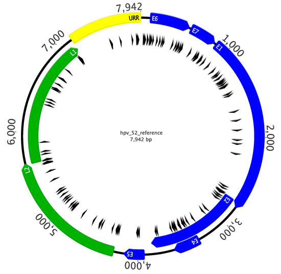 - Aho, J.; Hankins, C.; Tremblay, C.; Lang, F.; Forest, P.; Pourreaux, K.; Rouah, F.; Coutlee, F.; The Canadian Women’s HIV Study Group. Molecular analysis of human papillomavirus type 52 isolates detected in the genital tract of human immunodeficiency virus-seropositive and -seronegative women. J. Infect. Dis. 2003, 188, 1517–1527. [Google Scholar] [CrossRef]