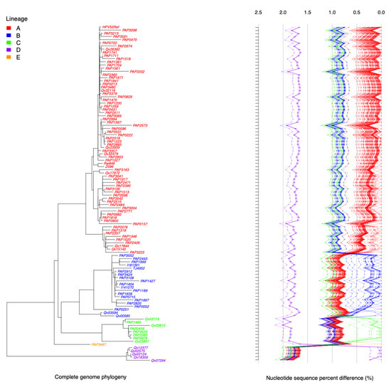2.4. HPV52 Phylogenetic Analysis of 106 Isolates