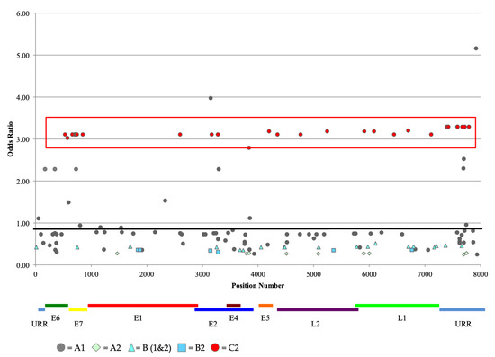 - Chang, Y.J.; Chen, H.C.; Lee, B.H.; You, S.L.; Lin, C.Y.; Pan, M.H.; Chou, Y.C.; Hsieh, C.Y.; Chen, Y.M.; Cheng, Y.J.; et al. Unique variants of human papillomavirus genotypes 52 and 58 and risk of cervical neoplasia. Int. J. Cancer 2011, 129, 965–973. [Google Scholar] [CrossRef]