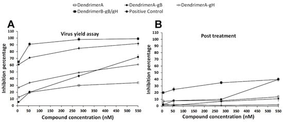 - Virus yield reduction assay. Confluent Vero cell monolayers (12-well plates) were washed with phosphate-buffered saline (PBS) and infected with HSV-1 at multiplicity of infection (MOI) of 1 for 1 h at 37 °C. Then, virus inocula were mixed with the antiviral compounds at the concentrations indicated above. Infected cells were washed with PBS, covered with fresh culture medium, and incubated for 48 h; then, they were scraped into culture medium and disrupted by sonication.