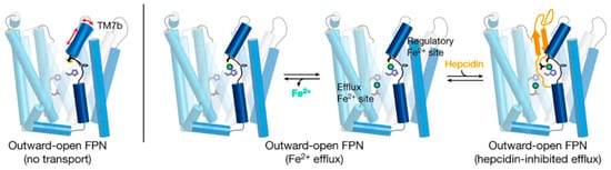 - Billesbolle, C.B.; Azumaya, C.M.; Kretsch, R.C.; Powers, A.S.; Gonen, S.; Schneider, S.; Arvedson, T.; Dror, R.O.; Cheng, Y.; Manglik, A. Structure of hepcidin-bound ferroportin reveals iron homeostatic mechanisms. Nature 2020, 586, 807–811. [Google Scholar] [CrossRef]