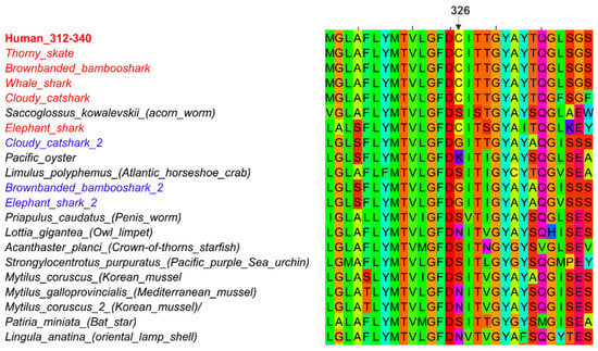 Ferroportin is evolutionarily ancient and can be found in plants and multicellular animals as simple as hydra. By contrast, hepcidin is a vertebrate hormone, with no known antecedent before fish. Remarkably, the essential conserved amino acid at the ferroportin binding site for hepcidin, C326 (human numbering), first appears in cartilaginous fish (