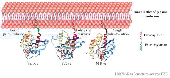 - Parker, J.A.; Mattos, C. The Ras–Membrane Interface: Isoform-Specific Differences in the Catalytic Domain. Mol. Cancer Res. 2015, 13, 595–603. [Google Scholar] [CrossRef]