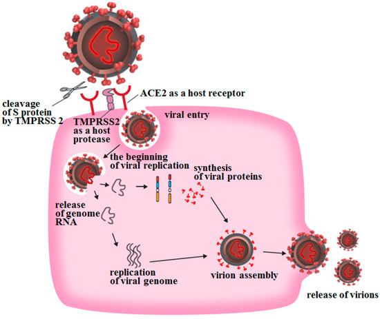 - Hoffmann, M.; Kleine-Weber, H.; Schroeder, S.; Krüger, N.; Herrler, T.; Erichsen, S.; Schiergens, T.S.; Herrler, G.; Wu, N.-H.; Nitsche, A.; et al. SARS-CoV-2 cell entry depends on ACE2 and TMPRSS2 and is blocked by a clinically proven protease inhibitor. Cell 2020, 181, 271–280.e8. [Google Scholar] [CrossRef]