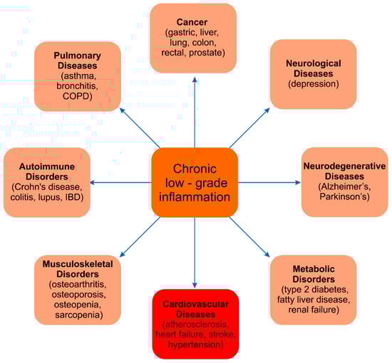 - Castro, A.M.; Macedo-de la Concha, L.E.; Pantoja-Meléndez, C.A. Low-Grade Inflammation and Its Relation to Obesity and Chronic Degenerative Diseases. Rev. Médica Hosp. Gen. México 2017, 80, 101–105. [Google Scholar] [CrossRef]