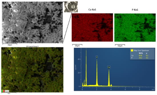 SEM image and EDX of K-GSGGG-HABP adhesive disc after mineralization.