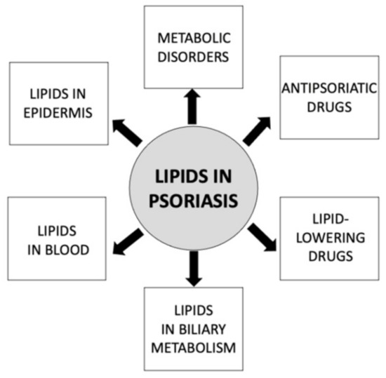 Lipids play an indisputable role in psoriasis. Aberrations of lipid expression and metabolism, as well as lipids’ transporting proteins and receptors, are frequently present in psoriatic patients. Psoriatic patients suffer more often from hyperlipidemia and are prone to develop MS, atherosclerosis, and thus cardiovascular disorders. Moreover, different drugs used in psoriasis therapy have a positive or negative impact on lipid profile; therefore, they must be chosen carefully. On the other hand, antihyperlipidemic drugs may benefit psoriatic patients, not only in the treatment of dyslipidemia but also in improving skin conditions.