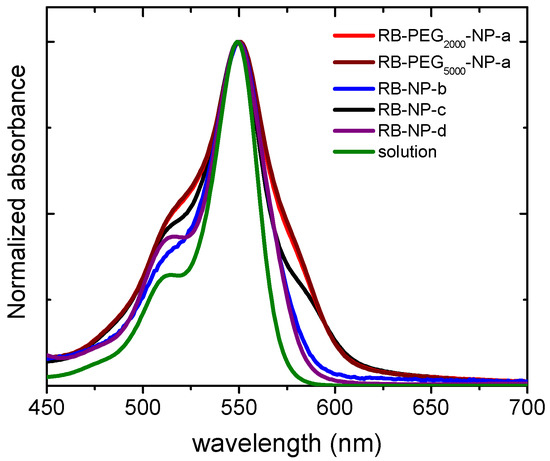 | System | Characteristic | PEG Length (Da) | DLS Size (nm) | ZPOT (mV) | [RB] (μmol/g) |