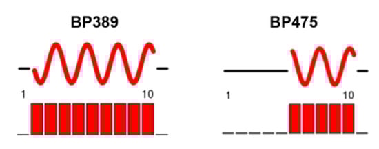 The structure of lipopeptides BP389 and BP475 was determined by NMR spectroscopy. NMR spectra were acquired at the Serveis Tècnics de Recerca of the University of Girona with a Ultrashield 400 MHz spectrometer equipped with an RT BBI. Each peptide was characterized with the following experiments: 1D 1H-NMR; 2D 1H-1H TOCSY (mixing time = 80 ms); 2D 1H-1H NOESY (mixing time = 400 ms); 2D 1H-13C multiplicity-edited HSQC; 2D 1H-15N HSQC; 2D 1H-13C HSQC-TOCSY. Water suppression was achieved with excitation sculpting or Watergate scheme. NMR spectra were processed and analyzed using TopSpin 3.6.2. All experiments were conducted at 10 °C using a shigemi tube calibrated for D2O. Five milligrams of sample were dissolved in 400 µL of 20 mM phosphate buffer at pH 6.5 in H2O/D2O (90:10) or in 400 µL of this buffer containing 30% of 2,2,2-trifluoroethanol-d3 to induce the formation of the secondary structure. From NMR assignments, the structural analysis was achieved with Chemical Shift Index 3.0 web server [,].