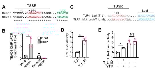 2.5. YAP/TEAD1 Complex Directly Suppresses the Expression of Tlr4
