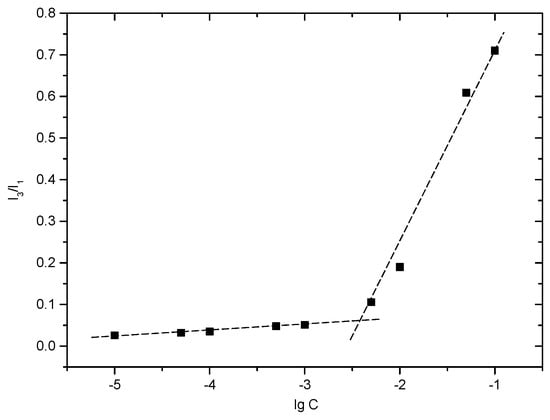 Plot of the fluorescence intensity ratio (I3/I1) against the logarithm of mPEG-CS-Hz-CH concentration.