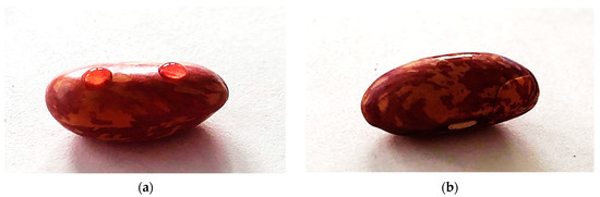 While hydrophobic recovery is commonly seen with plasma-treated polymers [31], it is not well researched on seed surfaces. In fact, the available literature does not suggest an important hydrophobic recovery after the plasma treatment of seeds. In beans, along with lentils and wheat, no such effect was recorded within one month after treatment with low-pressure IC RF plasma [15], but the WCA achieved by Bormashenko et al. after the plasma treatment was as large as 53°, much larger than the WCAs reported in Figure 4.