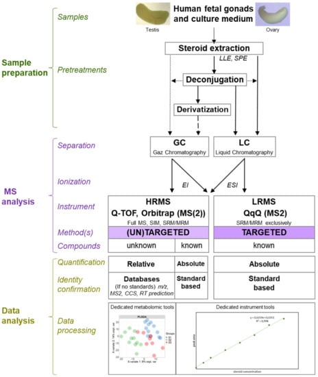 While this approach paved the way to a better understanding of the functionality of the steroidogenic machinery in human fetal gonads and allowed the determination of steroid concentrations as low as the picomole range, it displays several limitations. First, it uses radioactive elements that require compliance with strict laboratory safety rules and complications of waste disposal. Second, some precursors are not available in their radiolabelled form, and the recrystallisation steps required to characterise radiolabelled metabolites are extremely time-consuming. Third, the numerous studies using this approach showed a lack of standardisation.