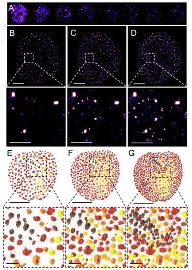 - Schermelleh, L.; Carlton, P.M.; Haase, S.; Shao, L.; Winoto, L.; Kner, P.; Burke, B.; Cardoso, M.C.; Agard, D.A.; Gustafsson, M.G.; et al. Subdiffraction multicolor imaging of the nuclear periphery with 3D structured illumination microscopy. Science 2008, 320, 1332–1336. [Google Scholar] [CrossRef] [Green Version]