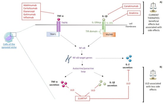 Chicago/Turabian StyleJacques, Camille, Ilaria Floris, and Béatrice Lejeune. 2021. "Ultra-Low Dose Cytokines in Rheumatoid Arthritis, Three Birds with One Stone as the Rationale of the 2LARTH® Micro-Immunotherapy Treatment" International Journal of Molecular Sciences 22, no. 13: 6717. https://doi.org/10.3390/ijms22136717
