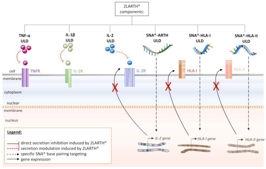 - Floris, I.; Appel, K.; Rose, T.; Lejeune, B. 2LARTH®, a micro-immunotherapy medicine, exerts anti-inflammatory effects in vitro and reduces TNF-α and IL-1β secretion. J. Inflamm. Res. 2018, 11, 397–405. [Google Scholar] [CrossRef]