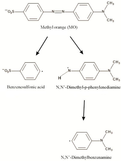 Every year, more than 0.7 million tons of dyestuffs and synthetic pigments are produced globally, among approximately 10,000 dyestuffs used on an industrial scale [1,2]. More than half of them are azo dyes (e.g., methyl orange), which are used by the textile and dye industry [3,4]. Therefore, in recent decades, elimination of azo dyes from wastewater has been a serious problem, as they contribute both to environmental pollution and to eutrophication, which affects the functioning of aquatic organisms [5,6,7]. The current methods used for wastewater treatment are mainly based on physicochemical techniques. These include chemical precipitation and subsequent separation of pollutants, electrocoagulation and adsorption. These techniques, however, do not ensure complete removal of the pollutants and may generate additional, secondary environmental pollution [8,9,10].
