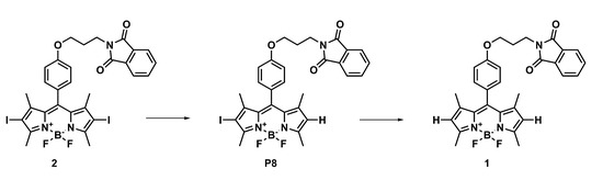 - Piskorz, J.; Dlugaszewska, J.; Porolnik, W.; Teubert, A.; Mielcarek, J. Boron-dipyrromethene derivatives bearing N-alkyl phthalimide and amine substituents of potential application in the photoinactivation of bacteria. Dyes Pigm. 2020, 178, 108322. [Google Scholar] [CrossRef]