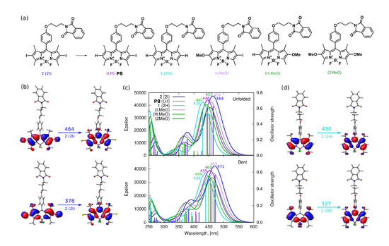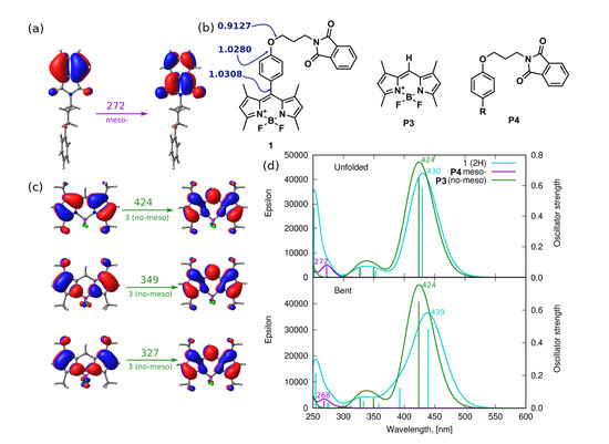 - Rybczyński, P.; Kaczmarek-Kędziera, A. BODIPY Dimers: Structure, Interaction and Absorption Spectrum. Struct. Chem. 2021, 32, 953–965. [Google Scholar] [CrossRef]