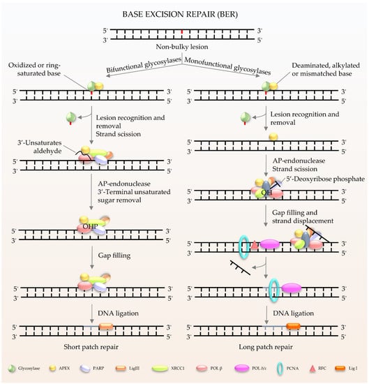 - Lee, T.-H.; Kang, T.-H. DNA Oxidation and Excision Repair Pathways. Int. J. Mol. Sci. 2019, 20, 6092. [Google Scholar] [CrossRef] [Green Version]