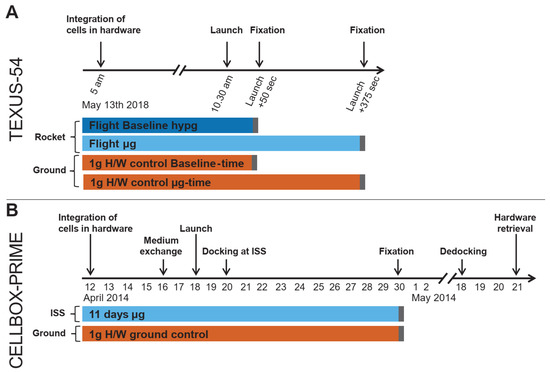 - 1 g hardware (H/W) ground control µg -time: samples were in the ground-module and cell culture supernatant was separated concomitantly to the Flight-µg sample.