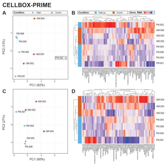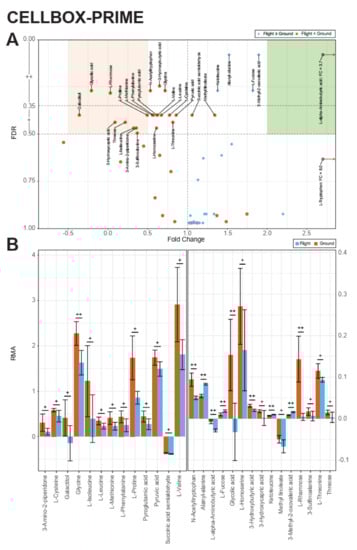 - Pecaut, M.J.; Mao, X.W.; Bellinger, D.L.; Jonscher, K.R.; Stodieck, L.S.; Ferguson, V.L.; Bateman, T.A.; Mohney, R.P.; Gridley, D.S. Is spaceflight-induced immune dysfunction linked to systemic changes in metabolism? PLoS ONE 2017, 12, e0174174. [Google Scholar] [CrossRef]