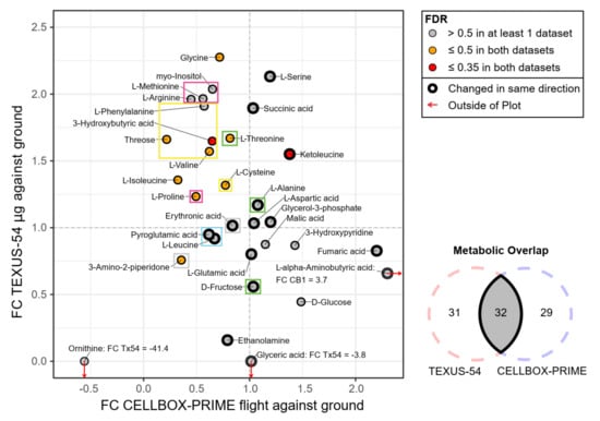 | Selected Metabolites Occurring in All Datasets | TEXUS-54 hypg | TEXUS-54 µg | CELLBOX-PRIME | |