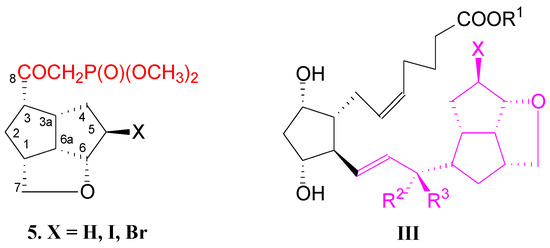 - Collins, P.W.; Djuric, S.W. Synthesis of Therapeutically Useful Prostaglandin and Prostacyclin Analogs. Chem. Rev. 1993, 93, 1533–1564. [Google Scholar] [CrossRef]