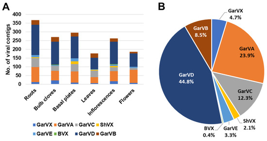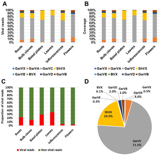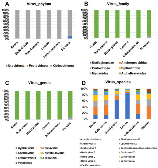| Virus | Abbreviation | Accession No. | Viral Genome Size | Roots | Bulb Cloves | Basal Plates | Leaves | Inflorescences | Flowers |